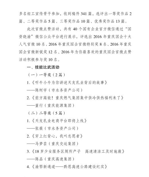 重慶國資網絡新聞寫作比武活動獲獎情況通報